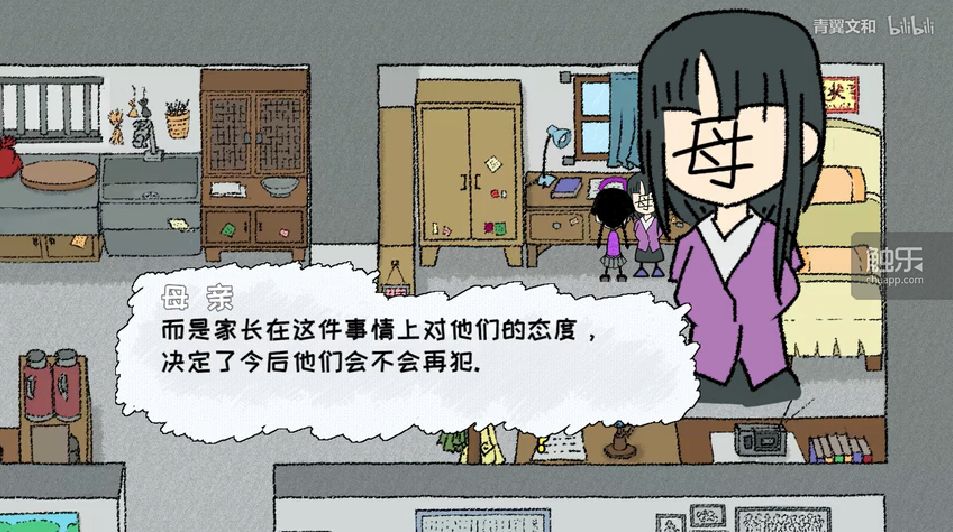 同样是走轻松路线的小品国产游戏,谢拉在今年8月发表的《劳资的长假》,写到母亲逼你写作业的时候,台词虽然也有戏剧化的夸张,但并没有逼人太甚,对孩子的要求都还在合理范围之内;随后,问你刚刚有没有翻她包的时候,也并不情绪化地一味猜疑、发怒,而是静下来,以她作为一位教师的经历,和你语重心长并带点无奈地好好讲了一下道理。这便使得角色形象立体了起来,我也因为看到了作者愿意去刻画一个比较通情达理的中国家长,而感到欣慰。《中国式家长》对此,能否参考一下呢?