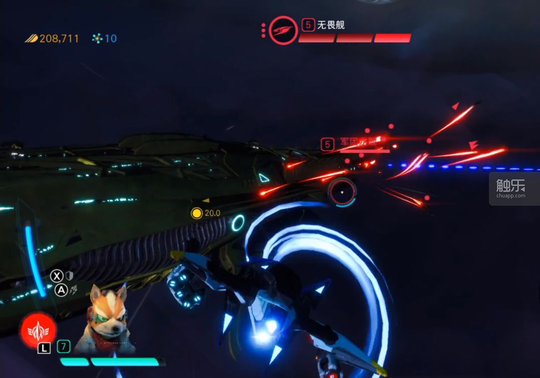 作为3D空间的飞行射击游戏,《星链》的战斗并不困难,一方面游戏的操作被大大简化,战机的任何攻击都自带非常夸张的辅助瞄准,可以做到敌人在屏幕中部就会被锁定击中;飞行则是充分利用了摇杆机能,左摇杆控制动力,右摇杆控制方向,玩起来很有驾驶飞船的感觉。