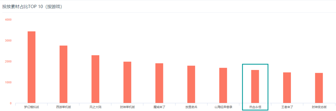 根据DataEye买量平台提供的数据也可以发现,9月投放素材TOP10产品中仅有一款传奇游戏《热血永恒》,而在年初传奇类却是买量市场的大头,在TOP10产品中占比过半。