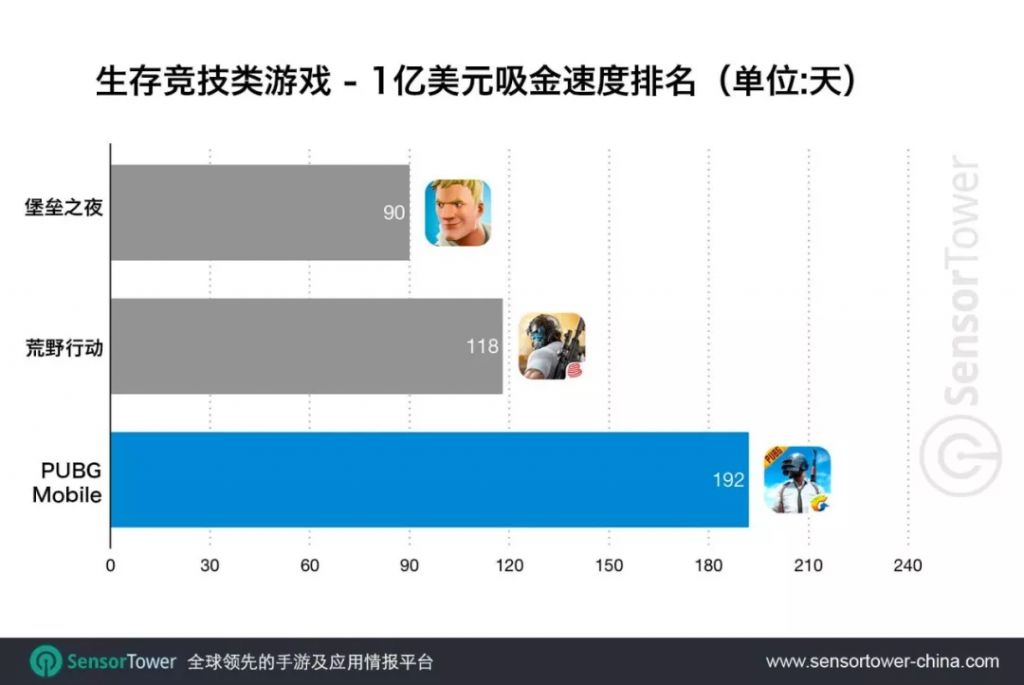 据统计,《PUBG M》从4月开启内购,到实现总流水超过1亿美元共用了192天,在速度上比《荒野行动》慢了62.71%。而目前,“荒野”已在全球实现总流水超过3.7亿美元,其中日本占74%,中国占23%。