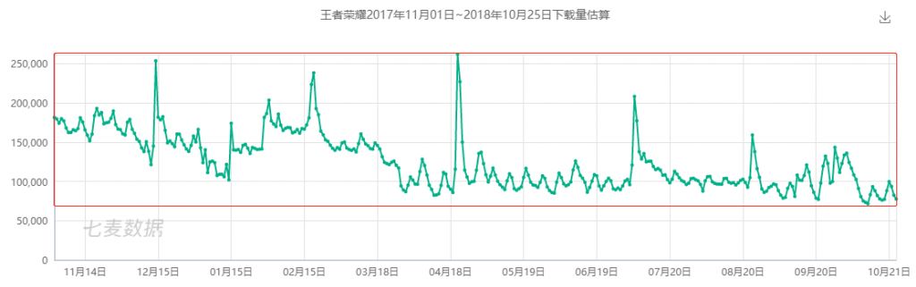此外,数据的下滑同样反应在下载量上。从趋势看来,“王者”近一年的下载量在持续探底,从日峰值超过47万,下降至不足8万。据QuestMobile统计,仅2018年第三季度,“王者”的MAU流失就超过了4000万。