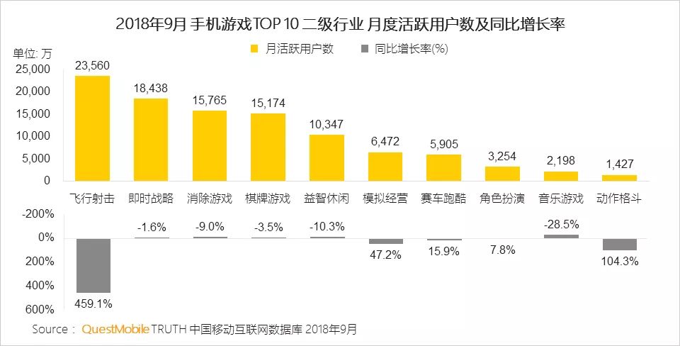 近日,据QuestMobile发布的《中国移动互联网2018年秋季大报告》显示,在以游戏品类划分的MAU及GR数据上,“吃鸡”所代表的飞行射击以5122万的差距,领先“王者”所代表的即时战略,成为2018年9月MAU最高的游戏品类。