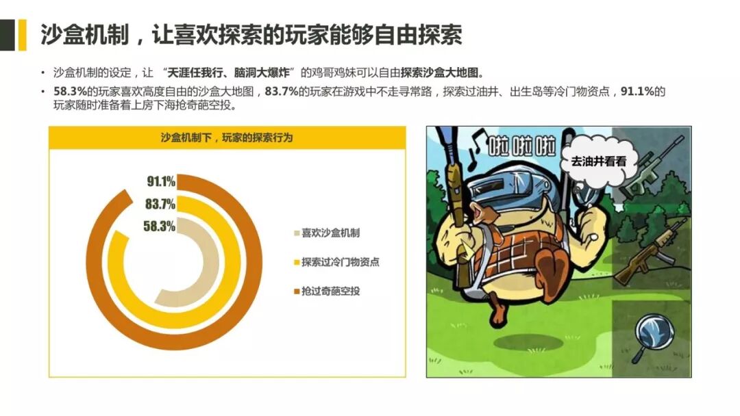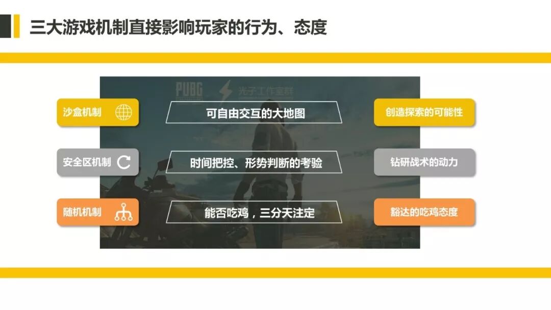 ▲ 沙盒机制、安全区机制和随机机制作为吃鸡游戏的核心机制,激发了玩家大量的创造性和战术策略,激发了游戏中不同的玩法;