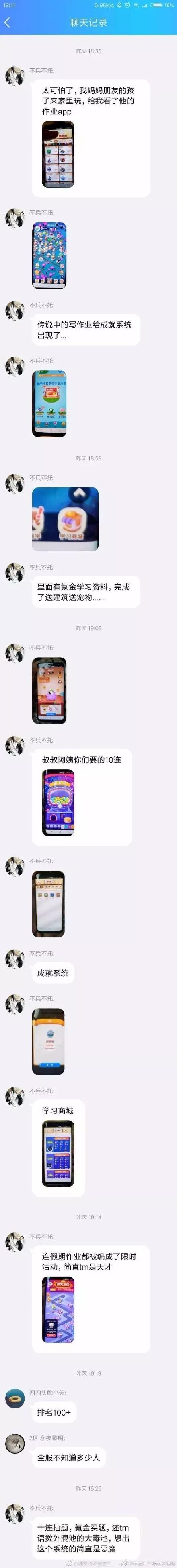 最近在国庆期间,一款不是游戏却有着浓厚游戏“原味”的APP在微博上走红。同时,还有一篇由华龙网的报道《作业APP暗藏闯关游戏 家长愤怒:让孩子在一堆游戏里做作业吗?》,让这款APP受到游戏群体以外更广泛的关注。