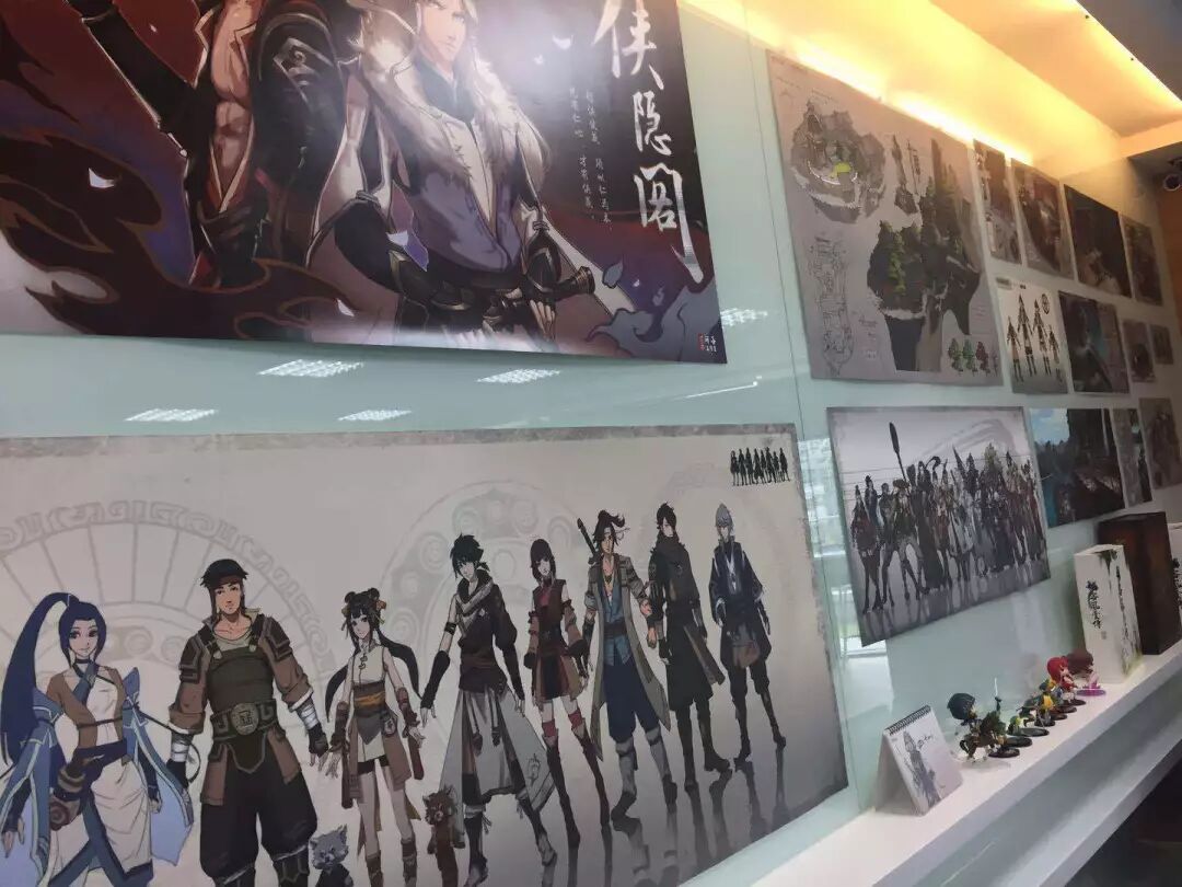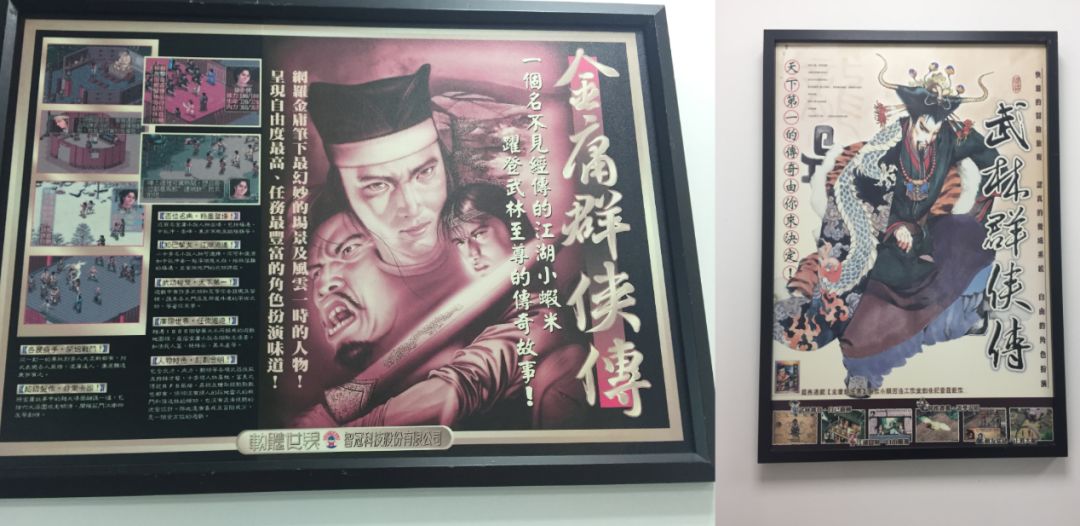 这里最吸引我的就是办公区四周摆设的宣传品了,几乎摆满了所有空闲的角落。这些陈列从徐大参与制作的第一款游戏《中华职棒2》,到《金庸群侠传》,再到最近几年的《侠客风云传》两部,再加上《河洛群侠传》《侠隐阁》的游戏海报应有尽有。