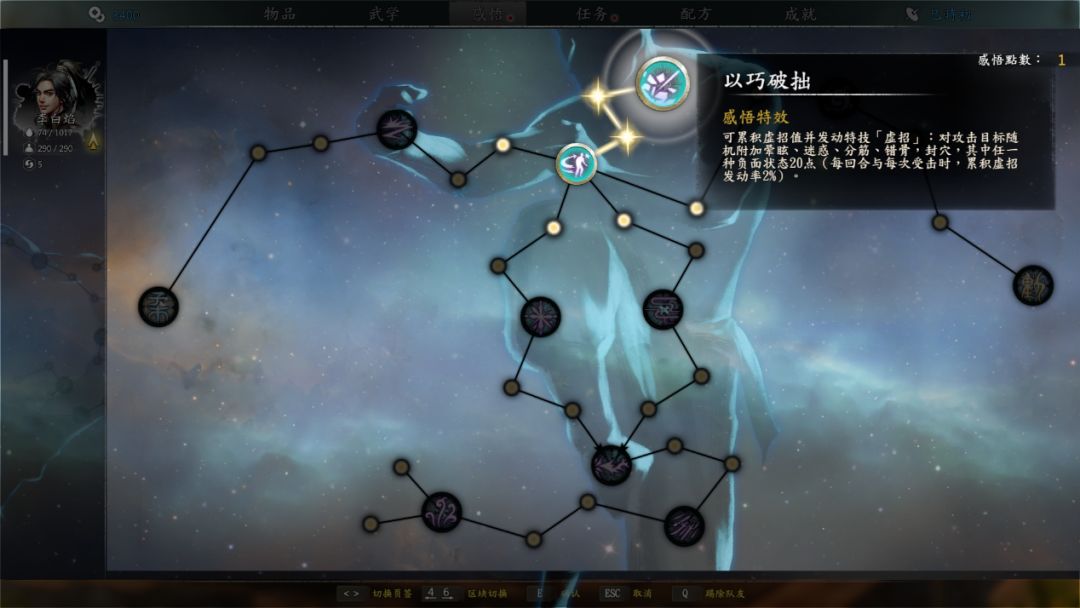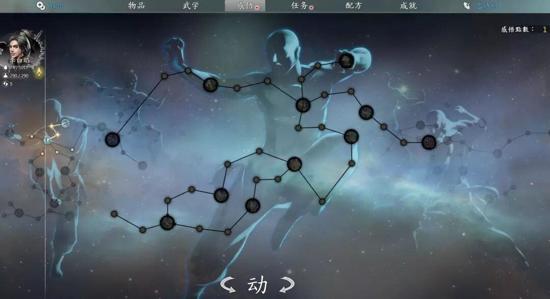 每次升级获得的感悟点数,可以为你增加许多被动技能,而且几大类别之间都相连在一起