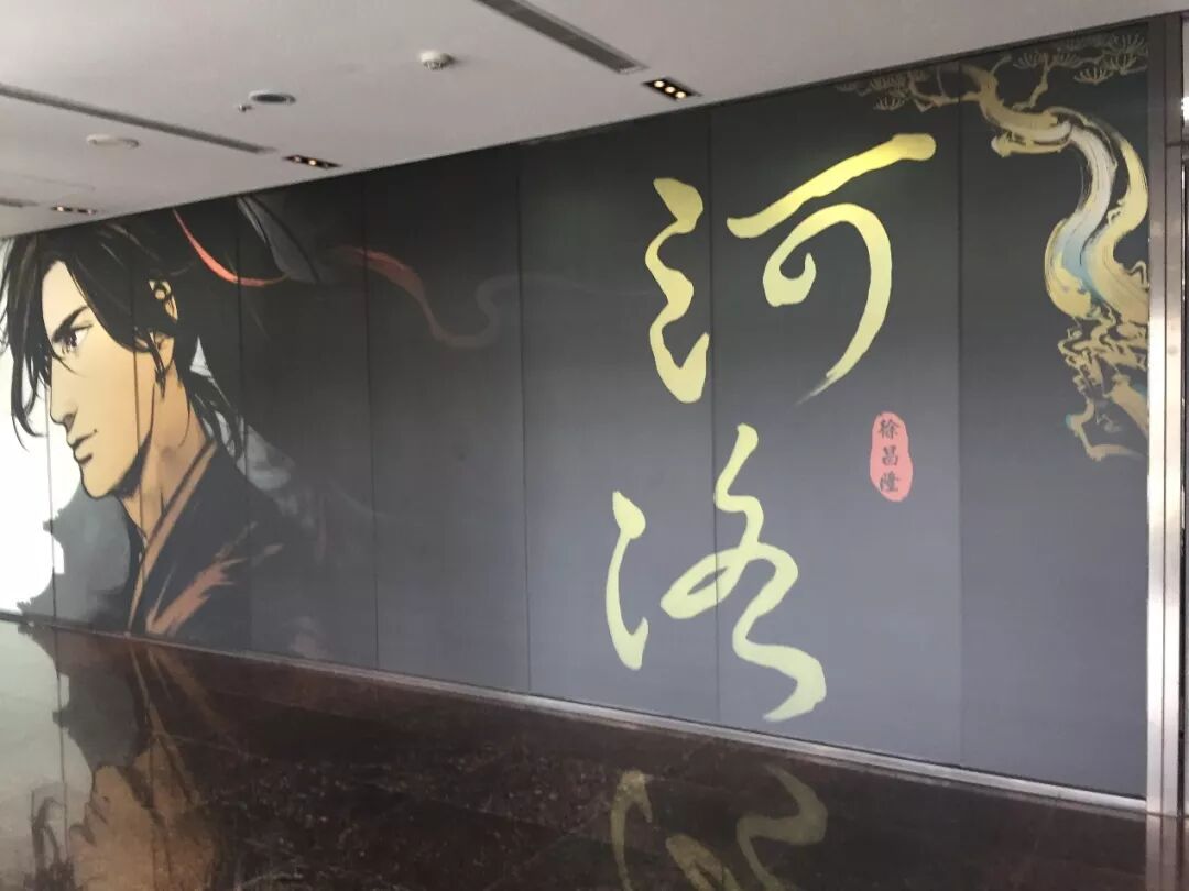 河洛工作室门口外墙是一副巨大的海报,在这栋写字楼里非常显眼