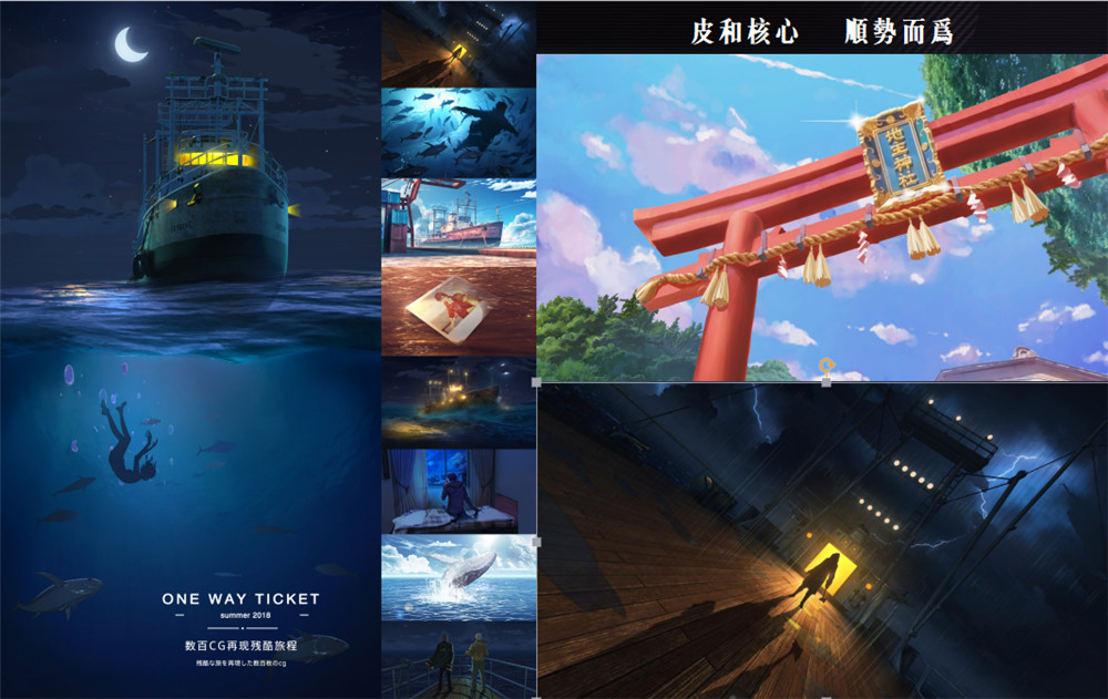 添加云层和海面,背景画面就完成了。这套流程在《单程票》后续开发中发挥了重要的作用,为项目提高了效率。