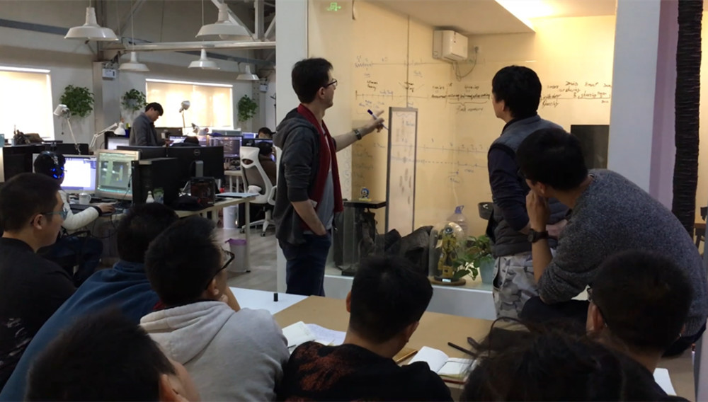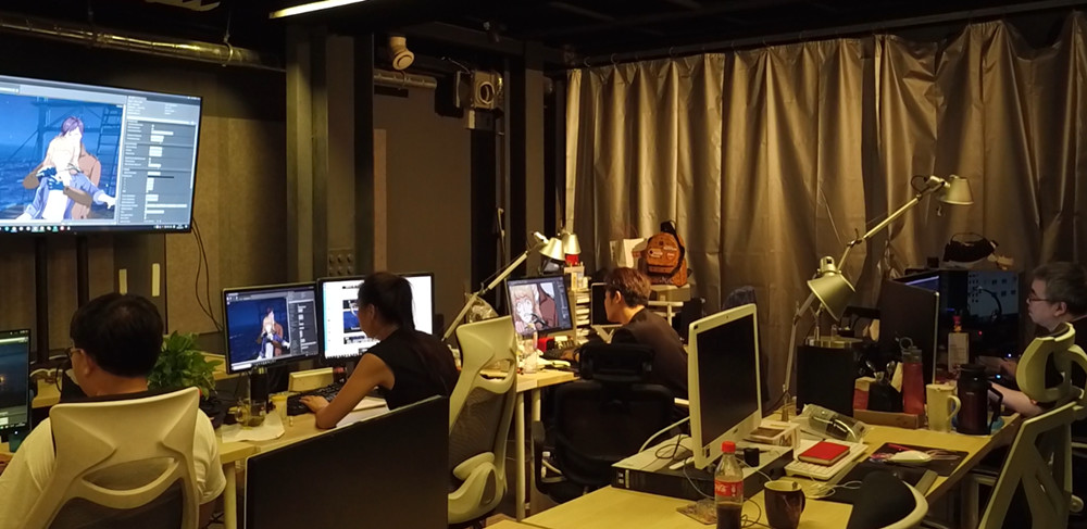 这个项目核心的团队也只有4个人,一位负责统筹风格的非常厉害的主美,还有一个身高一米八的程序妹子,以及一位既会程序实现又包揽了所有视频制作的老先生。其他的同事也会在需要的时候过来帮忙。我们的团队大多都是年轻人,非常有朝气和干劲,很高兴能和这些优秀的同事们合作。
