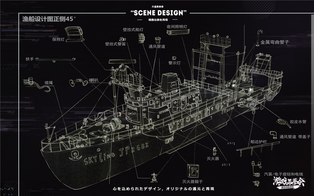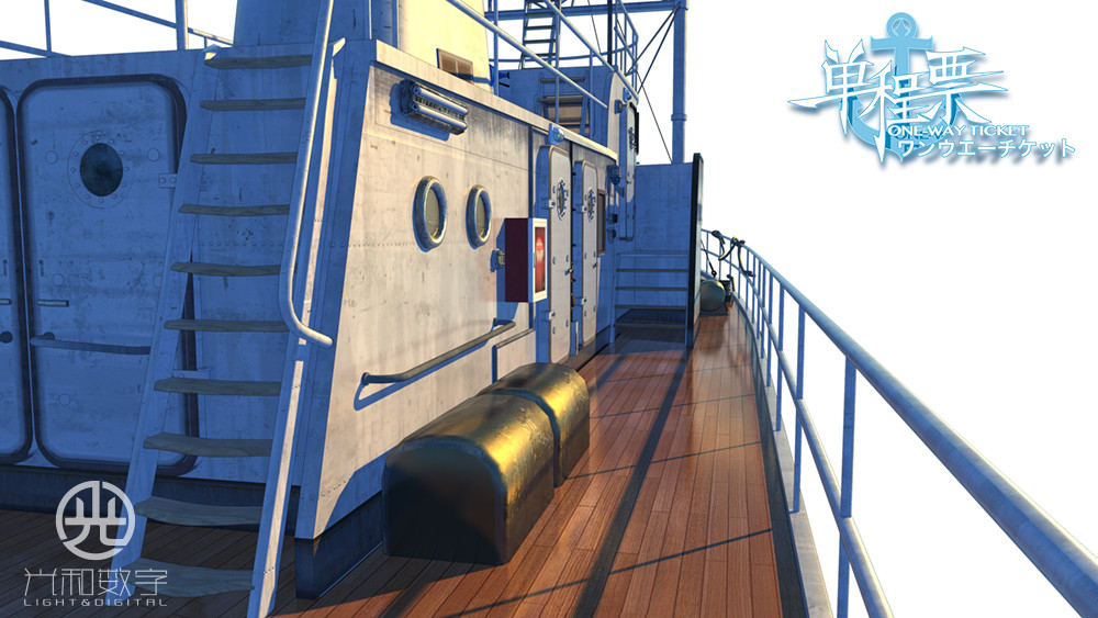由于大部分的情节会发生在船上,这艘船你可以看做是一个舞台,我们需要思考如何把这个舞台搭好,后续的情节才好高效的展开,因为整个团队的三维美术基础还是比较强的,我们就用三维制作一艘渔船,能够减轻美术的很大一部分负担,而且三维带来的便利,可以在船上任意角度取景。以至于最终游戏的场景也变得丰富,让故事体验更为真实。