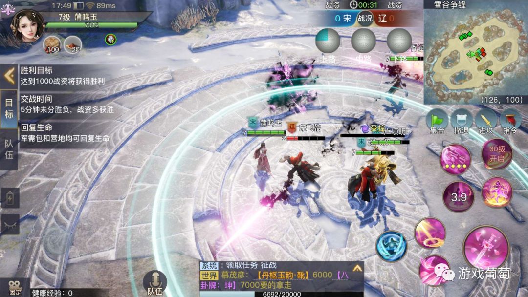 随后,游戏又会引导玩家体验1v1的擂台战,与12v12的战场玩法——在名为“雪谷争锋”的战场中,两个阵营要争抢地图中央的三个据点,通过占点和击败对手获得物资,取得最后的胜利。