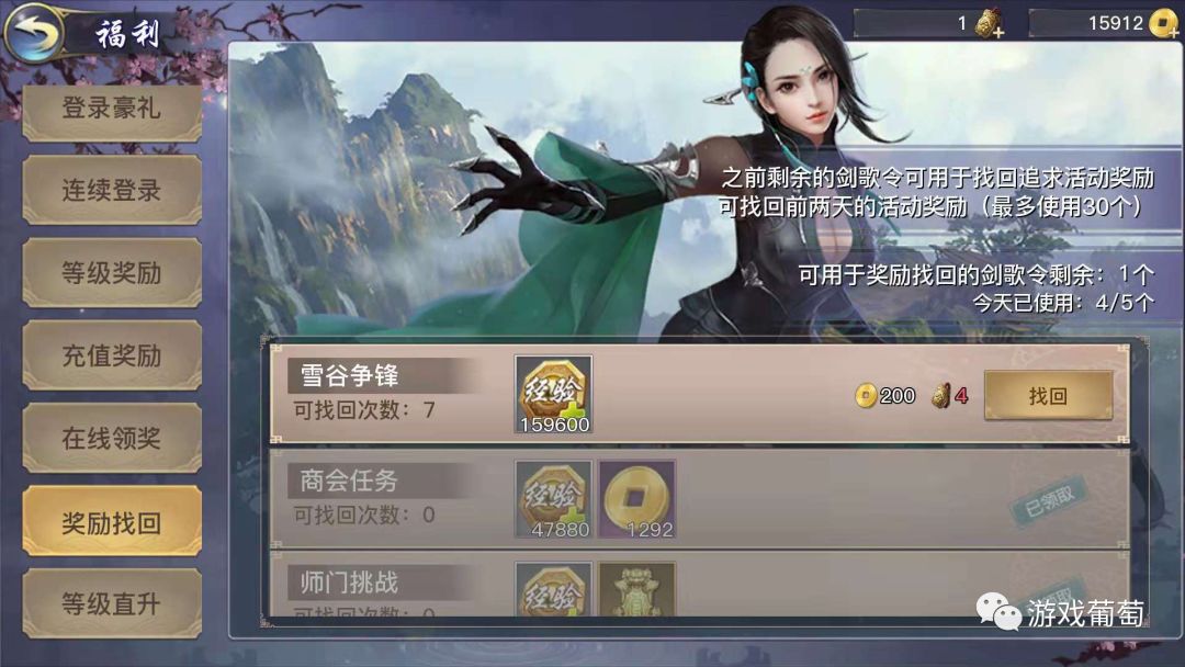 更神奇的是,游戏似乎比玩家更关心角色的成长速度。游戏提供了吃饭获取经验、离线自动挂机、花费少量货币,找回前一天日常任务奖励等多项送经验的功能。