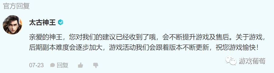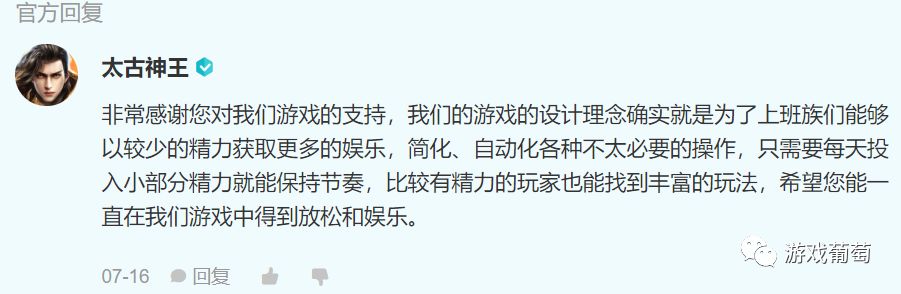 除了上文提及的“挂机收菜”,用户好评中提及最多的是游戏对于碎片化、空闲时间的利用,针对这些评论,官方回复内容也借此强调了游戏的核心基调。这些都在玩家层面保持了良好的互动。