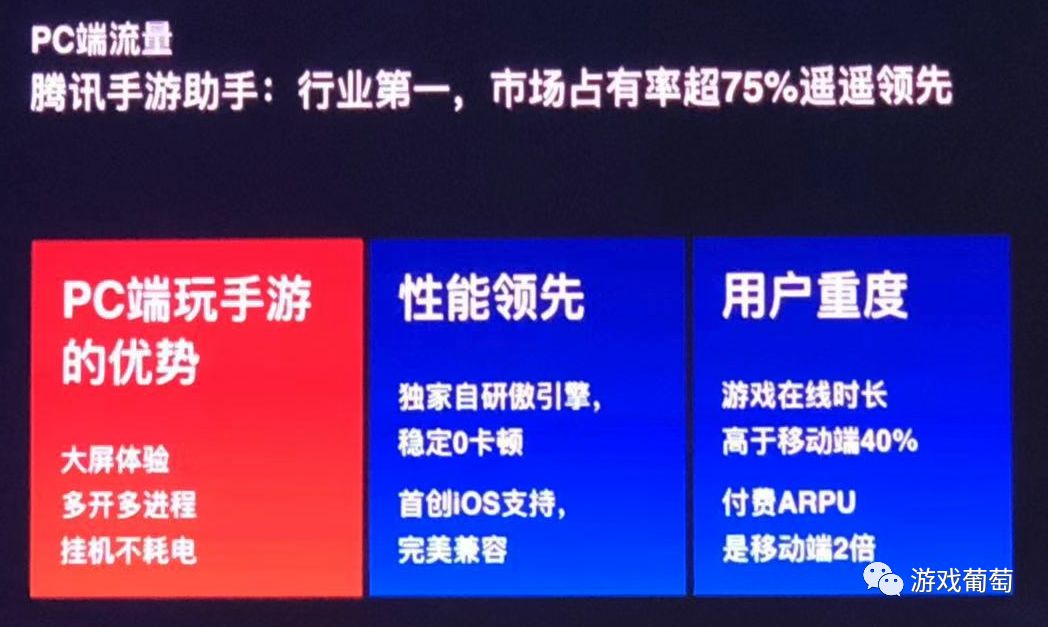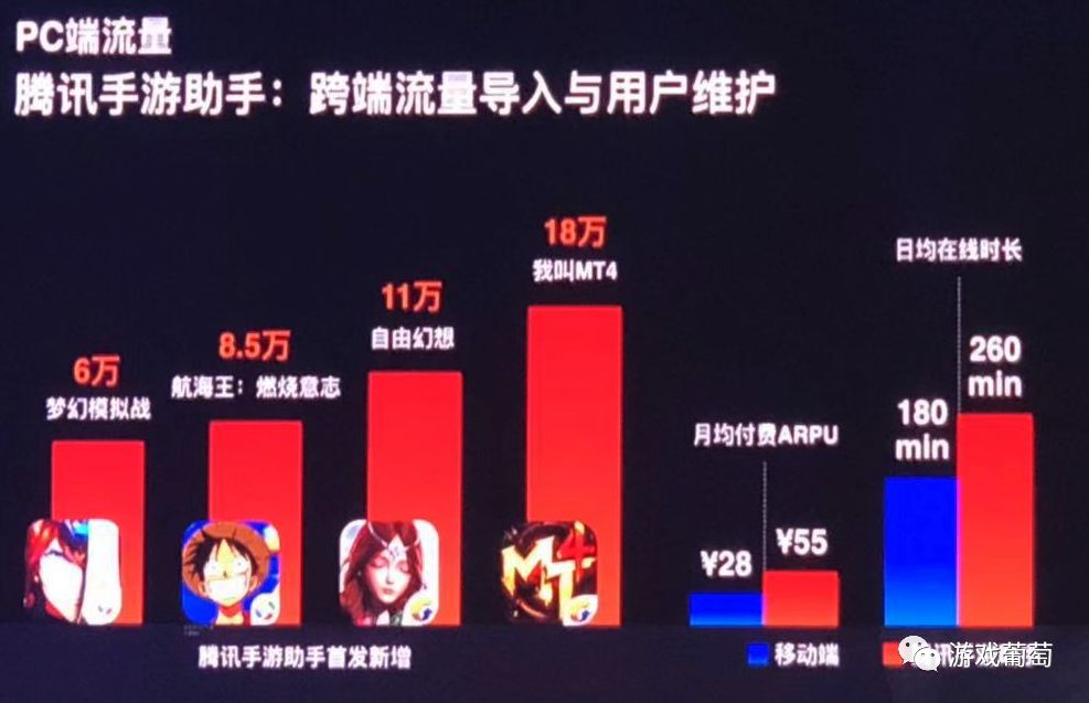 于小雨称,腾讯手游助手上用户的在线时长高于移动端40%,付费ARPU是移动端的2倍。