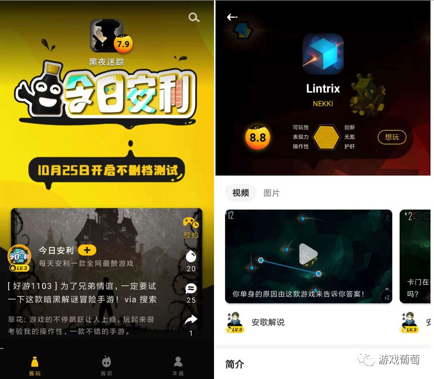虽然这款产品的逻辑更偏向短视频,更重视KOL的维护,也没有中心化的游戏推荐页面,但很明显,它切入的人群同样是那些希望找到好游戏,喜欢游戏内容,年轻,有品味的用户。从这个角度来说,它觊觎的是TapTap、好游快爆等新兴游戏平台的市场,而以短视频内容为核心的产品形态则是它的核心竞争力。