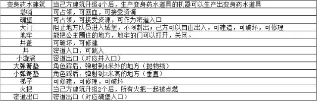 这些小机关,通过不同的功能,可以让游戏更有意思,并且帮助玩家可以更轻松的达成一些目的,比如快速逃跑、快速进入敌方城堡等等。