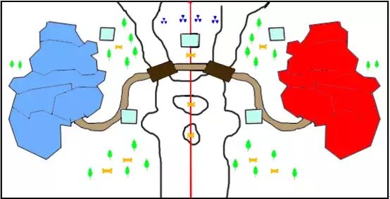 一张好的休闲竞技类游戏地图,第一要素是“公平”,那么对地图来说,就要做到【对称】。大家可以留意一下所有的MOBA游戏,其地图的基础就是围绕【对称】设计的。