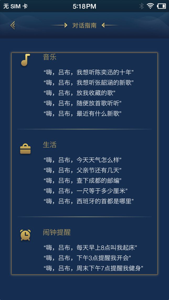 吕布机器人的性格十分逗比,当你心情不好的时候,只需要通过“嗨,吕布”唤醒陪聊,即可排解孤单也可以答疑解惑,甚至还可以让吕布机器人给你讲笑话,不知不觉中,心里的郁结就会消散得一干二净。