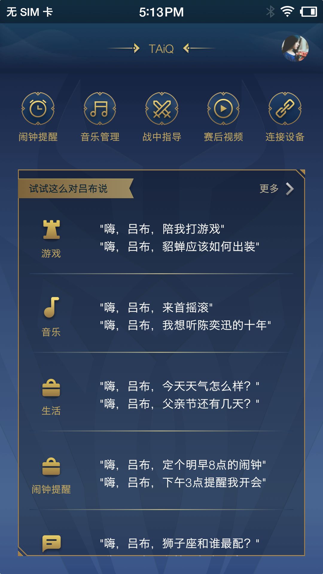 吕布机器人不仅仅是“王者荣耀智能游戏伙伴”,更是玩家生活中功能齐全的“声控私人小管家”,不夸张的说,吕布机器人几乎拥有一切有关生活和娱乐两大模块的功能。