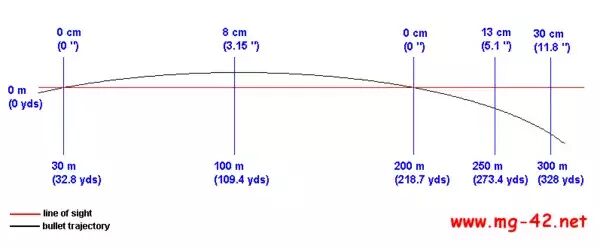 下图是一张G3步枪的弹道图,大家可以直观的理解弹道的含义。