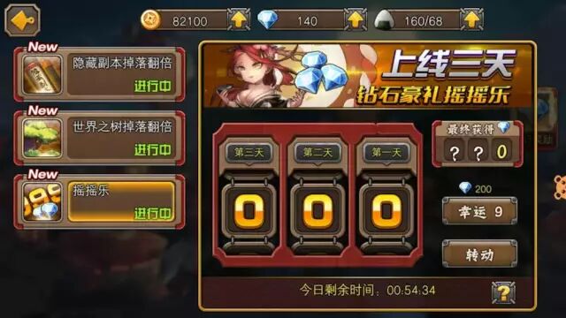 三日摇摇乐。为了刺激玩家三天都在线,设计了类似于老虎机的三日摇摇乐,玩家可以每天摇一个数字,数字随机,如果希望获得确定性,可以耗费100钻直接将数字买成9,消费篇中提到过,通过消费钱币获取确定性。这样的设计可以刺激玩家三天都会登录游戏,并完成指定操作,同时养成消费钱币买确定性的习惯。