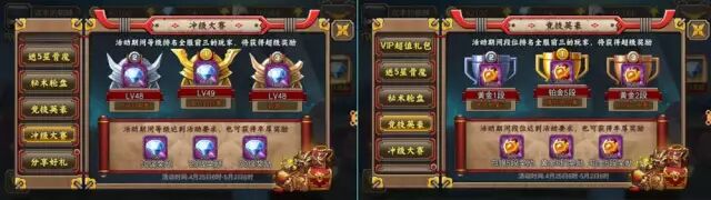 动态目标。通过每日任务和挑战任务,游戏为玩家设计了大量的静态任务,但是静态任务过多可能导致玩家新鲜感缺失,于是游戏中也会设计大量的动态目标,新开服的时候设计静态目标:达到30-40-50级分别领取不同礼包,同时设计冲击排行榜,这个目标就是动态的,是玩家和玩家之间的升级对抗,我是否可以拿到冠军礼包不是确定的,而是动态变化的。游戏中会持续的开放新的挑战地图,为玩家不断调整目标系统,所有的目标系统都可以的归为三类,PVE静态目标,PVE动态目标,PVP动态目标。