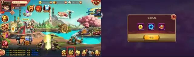 在线倒计时礼包。屏幕重要位置设计倒计时礼包,用户在线则礼包开始倒计时计数,1级礼包需要在线1分钟,倒计时结束则可以领取礼包中的金币,钱币和时间币。领取后倒计时进入2级礼包倒计时计数,2级礼包需要在线4分钟,3级礼包需要在线10分钟,4级礼包需要在线25分钟,5级礼包需要在线50分钟,6级礼包需要在线90分钟,玩家总是感觉自己再玩一会就可以捡到便宜,也是一种损失厌恶设计,玩家会感觉如果不玩下去,自己就失去这个礼包。