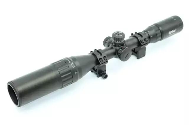 光学瞄准镜的最主要功能是使用光学透镜成像,将目标影像和瞄准线重叠在同一个聚焦平面上,即使眼睛稍有偏移也不会影响瞄准点。通常光学瞄准镜可以放大影像倍数,也有不放大倍数的。而可放大倍数的瞄准镜又可分固定倍数或可调倍数两类,如 4x28 指的是物镜直径 28 公厘,固定放大倍率 4 倍的瞄准镜,3-9x40 则是物镜 40 公厘,可调整放大倍率从 3 倍到 9 倍的瞄准镜。