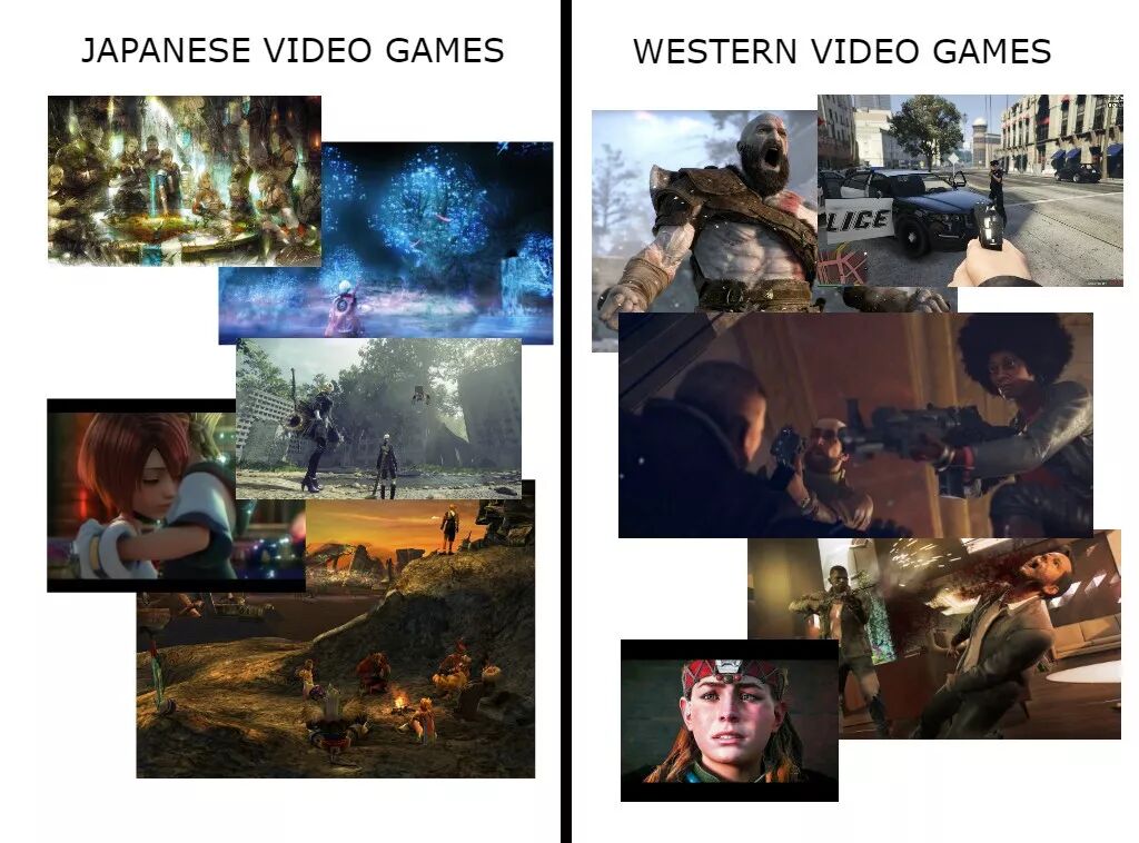 西方和东方电子游戏之间存在着极大的差异 - 从角色选择到方面。虽然一些国家的开发商和玩家更喜欢色彩鲜明的游戏(即俄罗斯和巴西),但西方游戏大致上比较不多彩。这些游戏在北美也销售得很好。