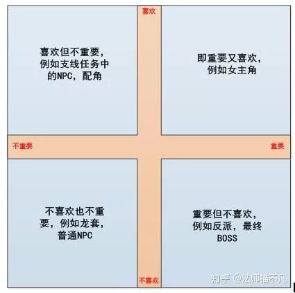 此外,以上的十层关系维度,其实对一个人来说,可以简单的分为两个层次,即是否重要和喜欢。按照四象限法则的划分法,大概是这样的关系: