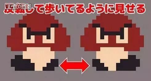 这使得无论画面如何变动,也不会产生更多容量需求,用来用去都是 CHR 里面的 8KB 内容。由于 CHR 只能存得下256个方块,玩家们最终看到的动作、敌人、场景,无非都是素材的重复堆叠和利用。比如《超级马里奥》的代表角色“板栗仔”,它走路的“特效”就源于同一张图片不断的水平翻转。