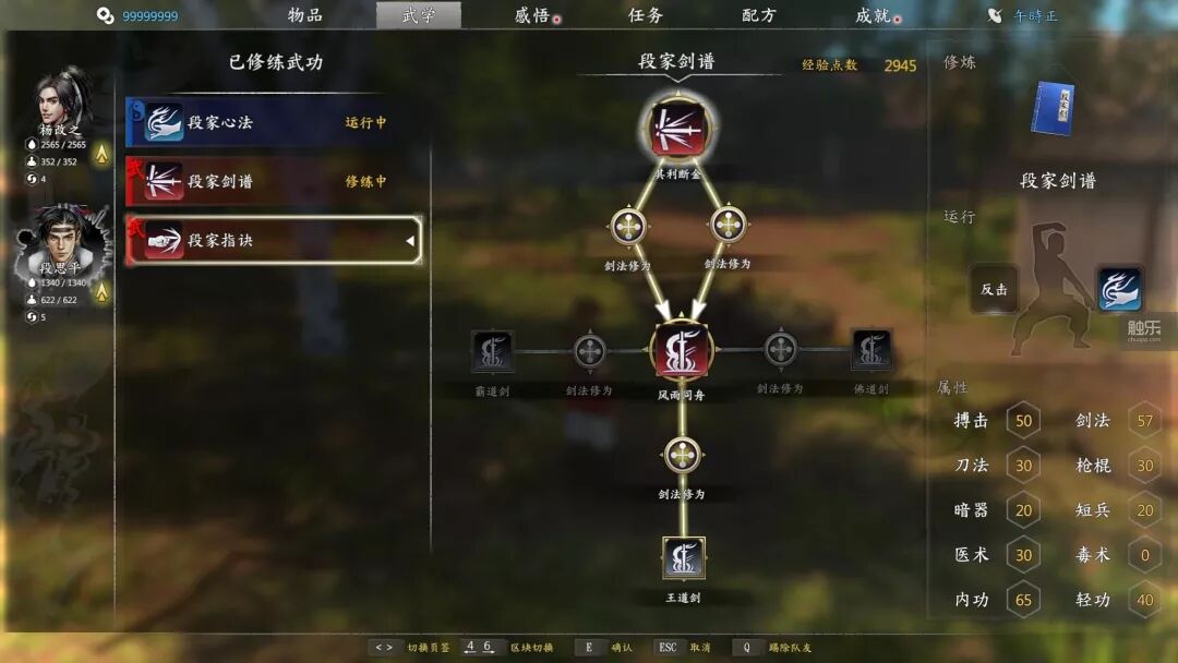 《河洛群侠传》中武学修炼与修习的秘籍有关,不同武功的差别有限