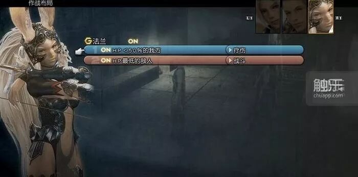 《最终幻想12》中的“Gambits”指的是作战指示书,简单来说就是:玩家可以设定所有队友的AI,即战斗时这些电脑控制角色的行动策略——以上图为例,“在我方有角色血量小于50%”时,法兰会自动“为队友疗伤”,战斗时也会“自动攻击血量最少的敌人”
