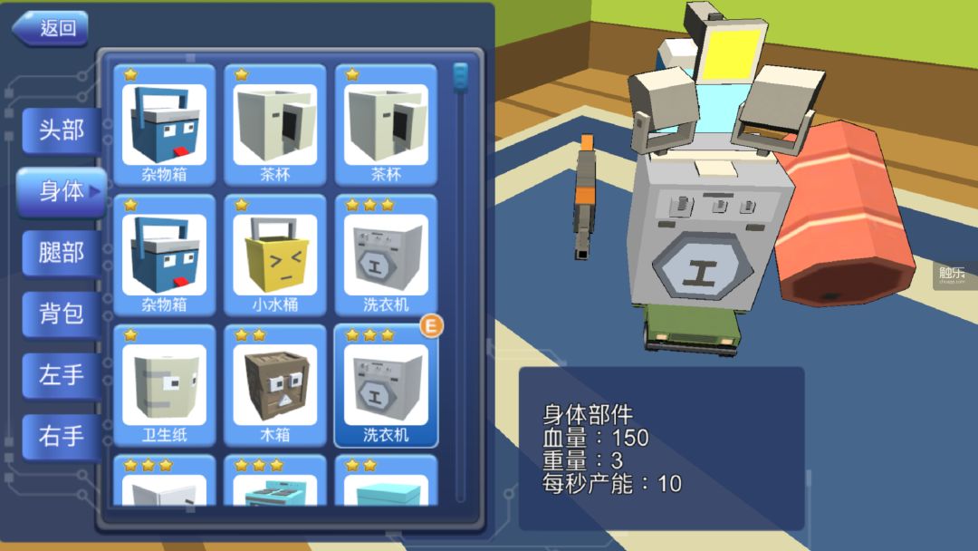 氪:对。如果以人类为主角的话,很难买到大量美术风格统一的3D模型,还要涉及骨骼动画,那样的话就得请专业的动作美术来调动作——可我连程序都请不起,3D美术就更别提了!如果是以“粗糙的家用电器拼装而成的机器人”为主角,动画部分我就可以自己做,也能买到比较合适的3D模型。