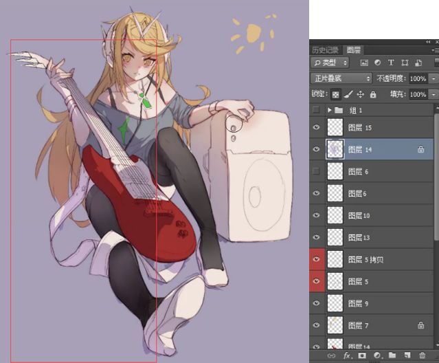 4.一开始咱们的时候线稿不要用纯黑的,可以调成这个酒红色,然后有正片叠底模式。
