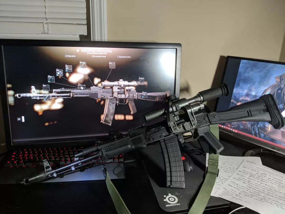 笔者和他因《逃离塔科夫》结识,这款由俄罗斯开发商出品的生存类射击游戏,以极高的枪械拟真度著称。游戏中的枪械不但建模精细,而且配件繁多,允许玩家高度自定义。