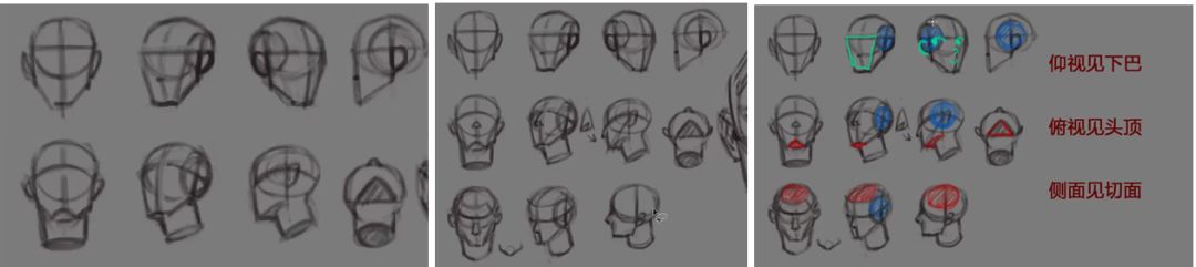 2.仰视见下巴,俯视见头顶,侧面见切面