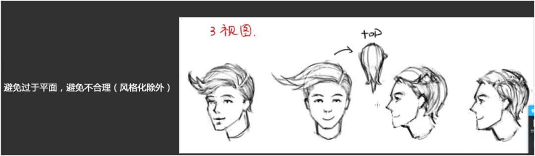 4.注意画三视图的时候,注意侧面的发型的表达。