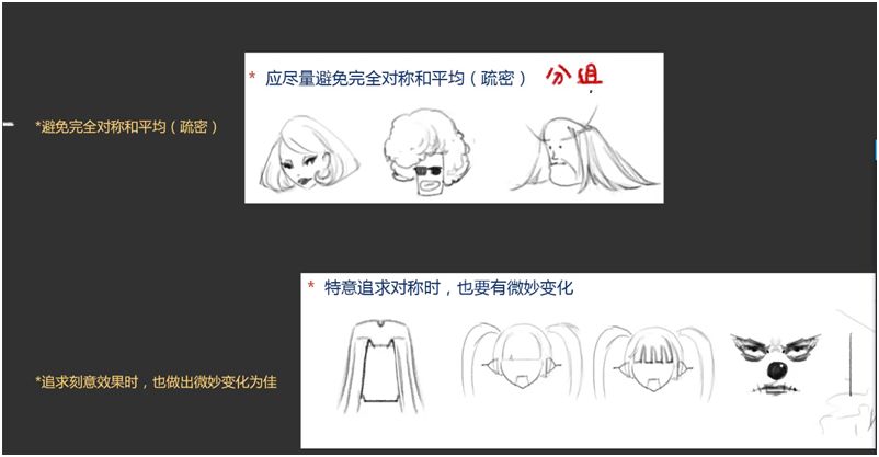 2. 尽量避免完全对称,注意疏密节奏感。要进行分组。刻意进行对称时,要进行一些微妙的变化。