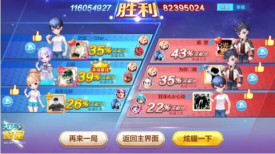为了增加玩家之间的互动,酷跑上线3个月后,规划了世界对战的玩法。具体玩法是:参与游戏的玩家两两匹配进行对战,最后根据比赛分数、距离等决定胜负。