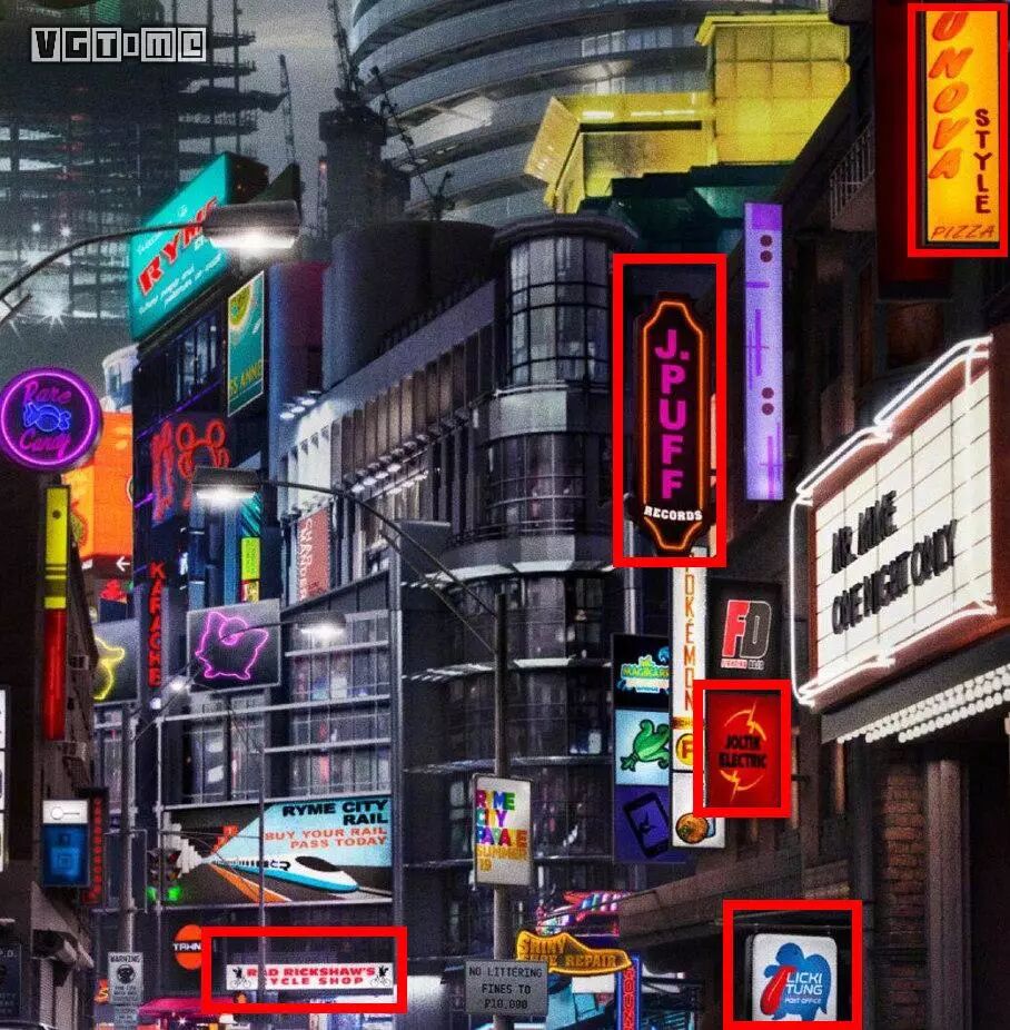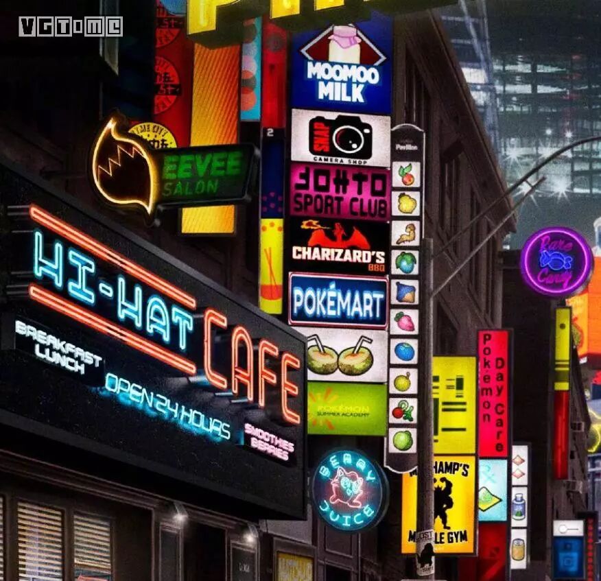 官方还放出了《名侦探皮卡丘》的首个海报,上面令人眼花缭乱的店名都有这些: