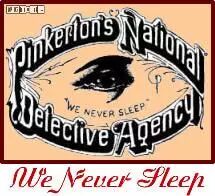平克顿侦探事务所由英国移民阿伦·平克顿创立。他曾是芝加哥第一批公共警察,也曾是县级地方上的治安官(警长)。1850年他在芝加哥正式创立了自己的侦探事务所,成为美国现代职业侦探第一人。平克顿公司以一只瞪大的眼睛作为标志,以至于后来“私人眼睛”(Private Eye)成为私人侦探的别称。