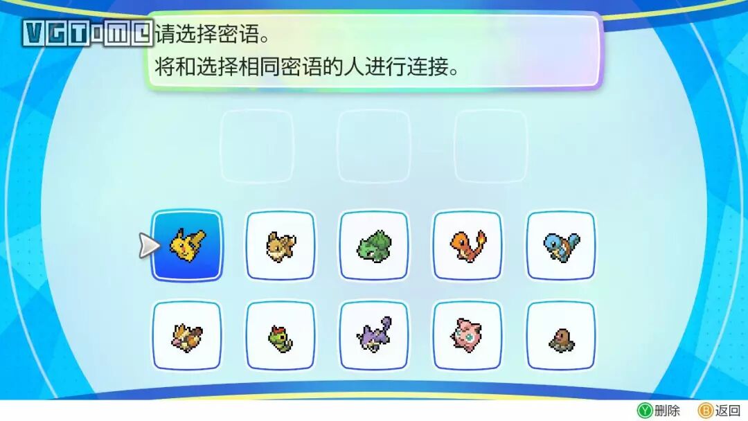 游戏改变了以往的传输、对战模式,而是采用“密码联机”的设定,传输和对战的玩家需要设定“宝可梦密码”。游戏提供了十个宝可梦的“像素图标”,玩家双方需要共同输入同一个密码。这样设计的好处是,它保证了玩家联网对战的速度,我在与同伴进行传输和对战时,裸连情况的网速极为稳定;尤其观看大量通信进化的进化画面时,都没有出现掉线的情况。而坏处则显而易见,联网时的互动感几乎丧失殆尽。