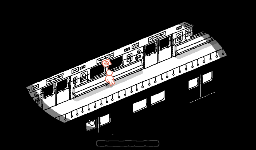 除此之外,《泡泡的人》还擅长将叙事融入进游戏人物的行动之中。画面只给出有限的信息,具体发生了什么任凭玩家想象。